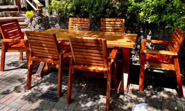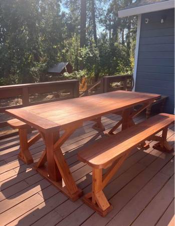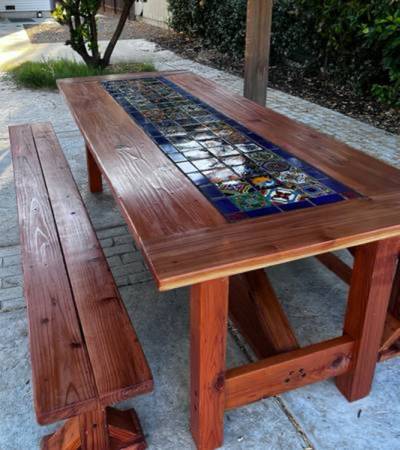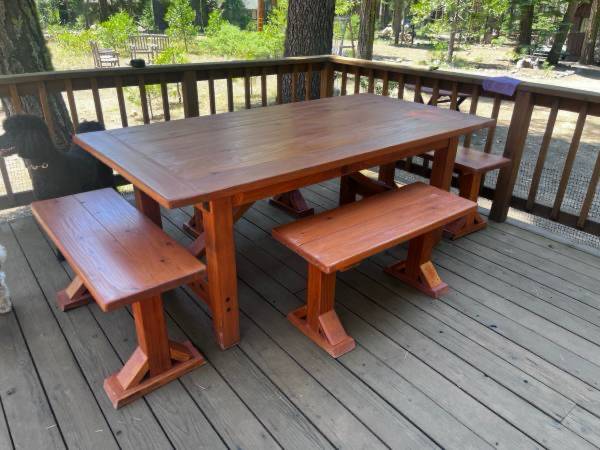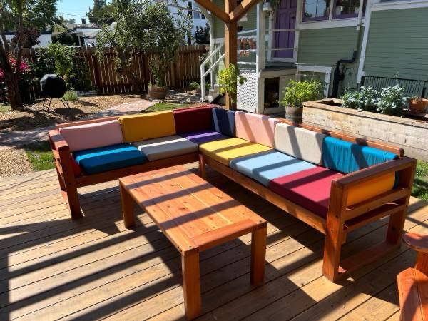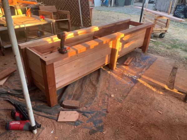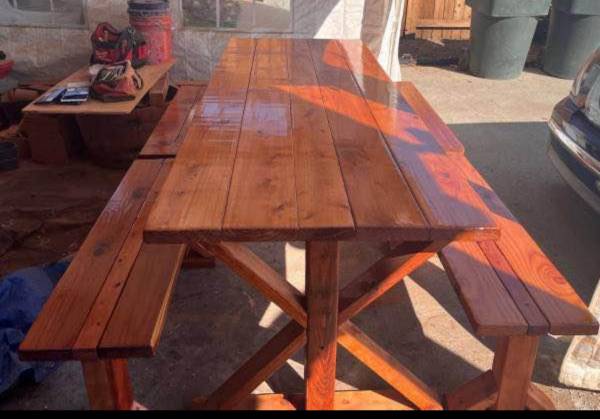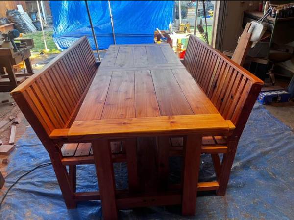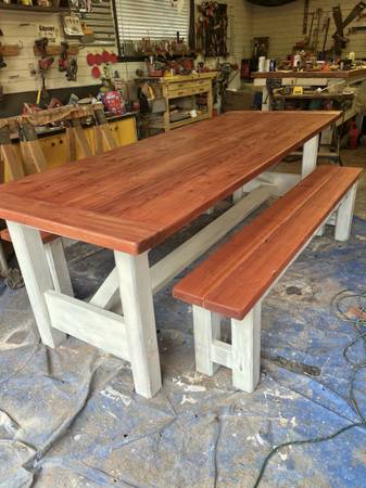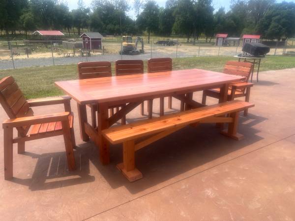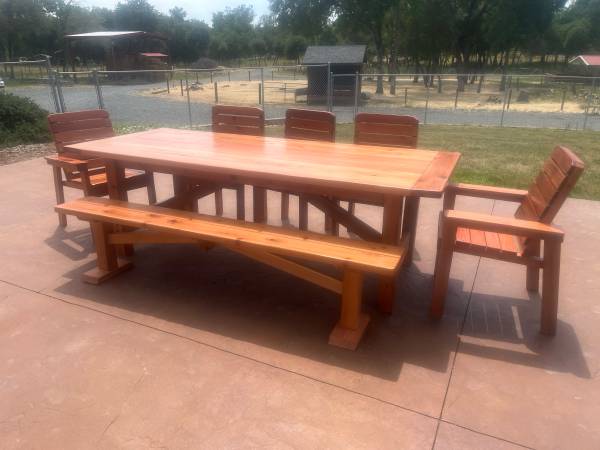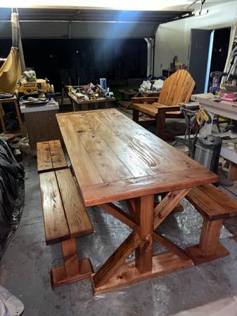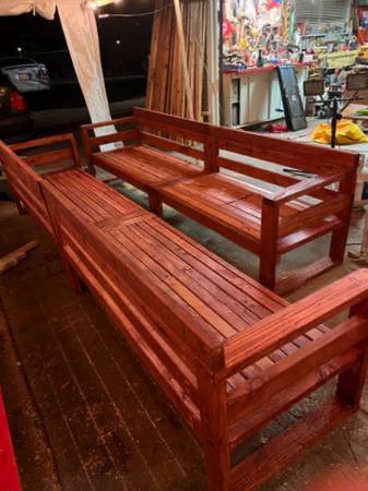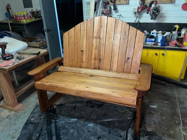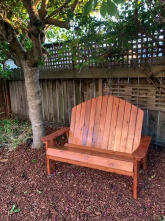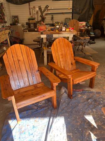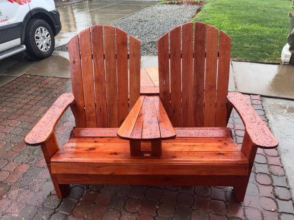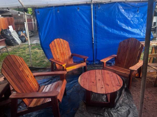 Quality Handmade outdoor patio furniture, solid redwood or cedar. Adirondack chairs, rockers and loveseats, custom fire pit tables, garden benches, planter boxes, bench/planter box combos, patio tables, picnic tables, barstools and much more! Every piece is waterproofed and sealed, I offer an optional coat of spar urethane or painted to color of your choice. Custom cushions are also available with your choice of fabric for that perfect look and fit. !! I DO KIDS SIZES ALSO!!i