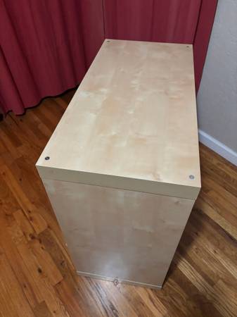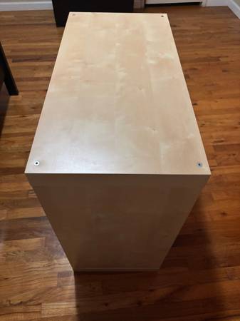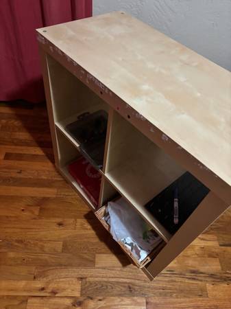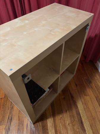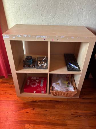 Sturdy book shelf that can be place on the floor or hung on the wall. Comes with hooks to hang on the wall; in very good condition.