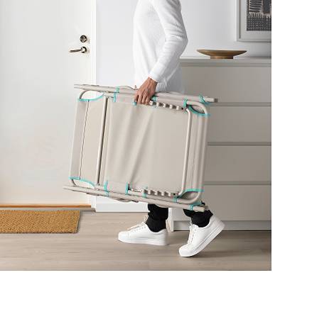Made of heavy polyester fabric, which is very durable. The chaise folds flat so it is easy to pack and carry. Length: 74 3/4 " Width: 23 1/4 " Height: 11 " Max. load: 220 lb Weight: 14 lb
