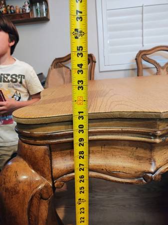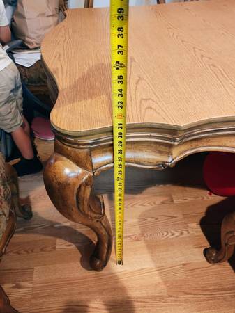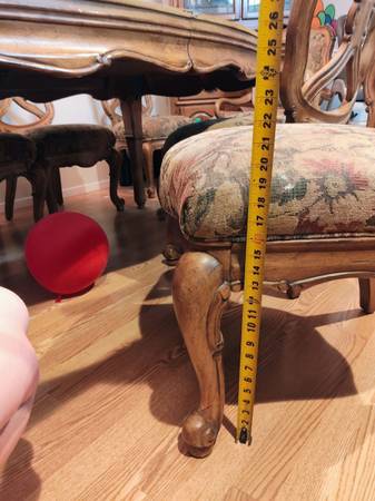 Large formal dining room table and chair with 2 leaves to extend it. 8 chairs. This is Italian inlay formal dining room set. All dimensions are noted. Dimensions do not include 2 extensions. Serious...