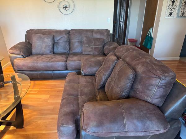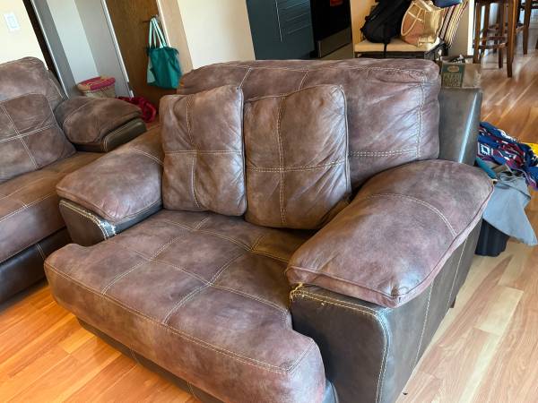 Fairly used furniture available for pick up. Sofa: 96”x44”x36” Ottomon: 60”x44”x36” Love seat: 41”x25”x19” Sectional 1:52”x34”x30” Sectional 2: 65”x30”x30”