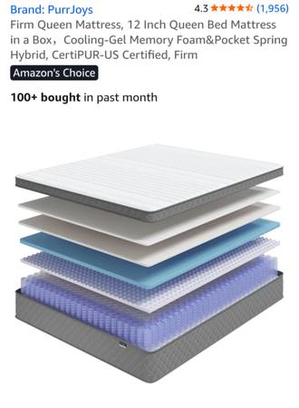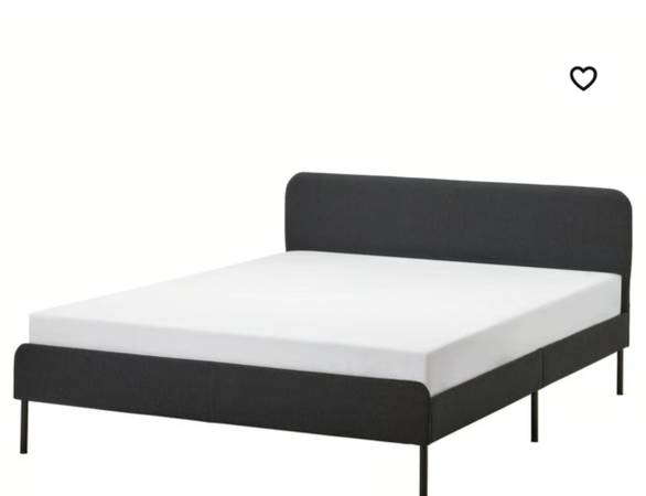 Like new Ikea Slattum Queen upholstered bed frame with Purjjoy Firm Queen 12 inch bed mattress in a box with cooling gel memory foam and pocket spring hybrid, certipur US certified. Both items are 3...
