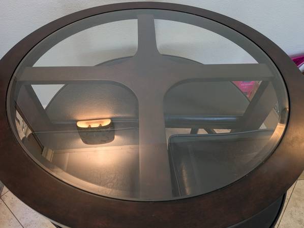 Glass top table includes four stools Table / Mesa: 40" diameter x 36" height Stool / Taburetes: 24" height ☑️table: light scuffs (pequeñas marcas) ☑️glass: great condition (en buen estado) ☑️stools:...