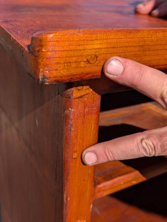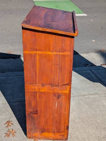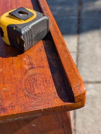 We have owned this beauty for over a decade, Condition is excellent. . Lipped to hold a book. Solid, well made, held together with old fashioned wood dowels. Can be used in a multitude of interesting ways. see pictures for measurements.