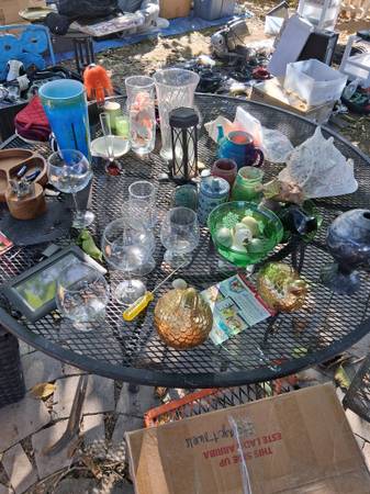 Yard sale- everything must go! Liquidating storage letting things go Pennies on the dollar. Will be out all day today on Sunday and all next weekend on the 25th and 26th. Come make an offer. Lots of toys, books, glassware, knick knacks, statues, tires, sportswear, camping gear, shop lights, computer stuff, Crystal, marble, more than I can mention.
