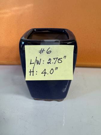 Item #6: Brand new blue color square shape, it’s the high quality bonsai pot. Dimension: length/width = 2.75”, height 4.00". Asking $10