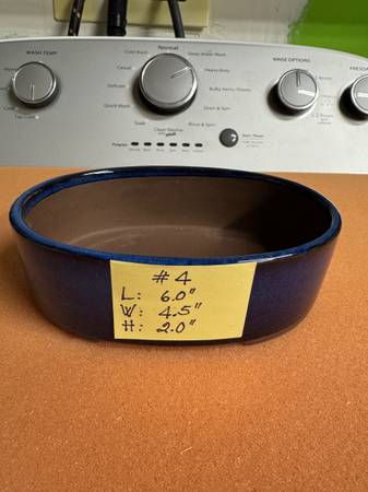 Item #4: Brand new blue color oval shape, it’s the highest quality you could obtain from bonsai pot made in Japan. Dimension: length = 6.00", width 4.50", height 2.00". I bought it from my trip to Japan. Asking price $40