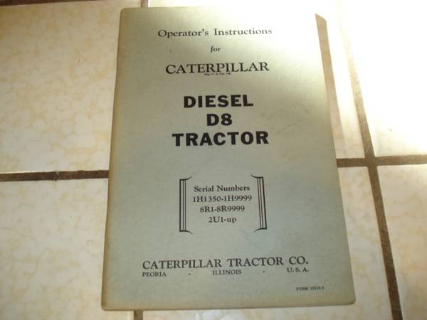 Caterpillar D8 2U. Three Original Servicemen's Reference Books. $120. Three Original Parts book. $120. Two Original Operator's Instructions manual $60. One Diesel Engines Service manual $80....