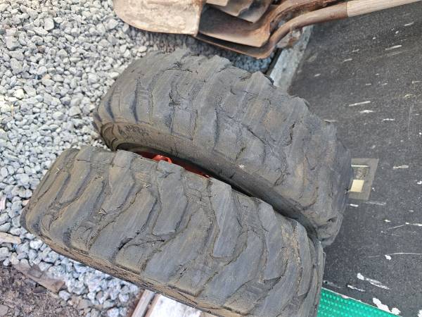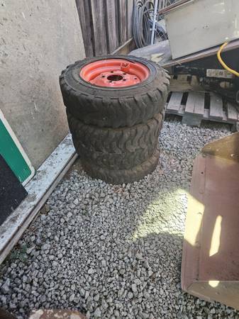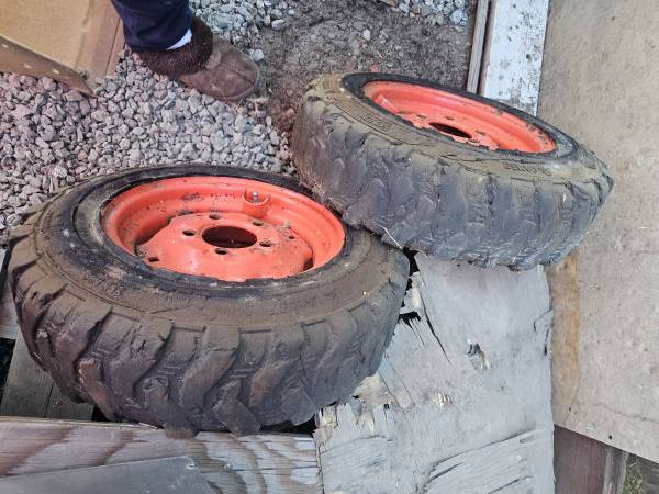 Used S70 Bobcat skidsteer tires that are foam filled and have many hours left .