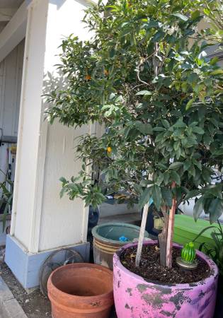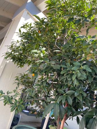 Big kumquat tree is in a ceramic pot planter very heavy fruits are coming a lots great decor in your yard