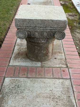 All the right hallmarks: column, scrolls/volutes. 25” x 23”. Very nice with fine patina.