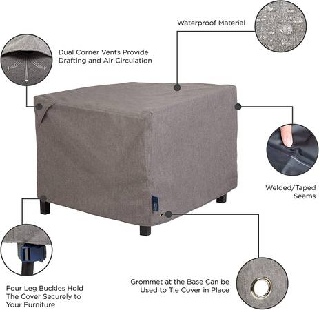 NEW Waterproof Firepit Table Cover (42 W x 42 D x 22 H in Inches Heather Grey