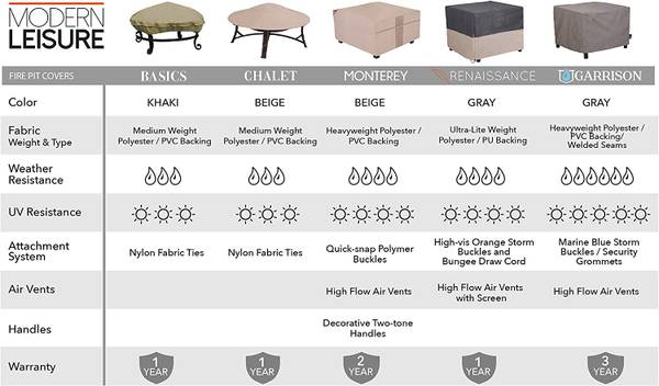 100% WATERPROOF COVER: Durable material has reinforced, taped seams to keep your fire pit clean & protected from the elements while excellent UV resistance helps reduce fading over time