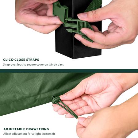FIXING: Click-close straps and adjustable drawstring keep the cover fixed in place, no warrying about windy any more.