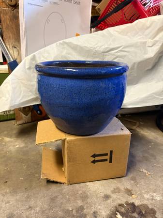 11 1/2 Inch Blue Glazed Terra Cotta Planter - $25 (saratoga)