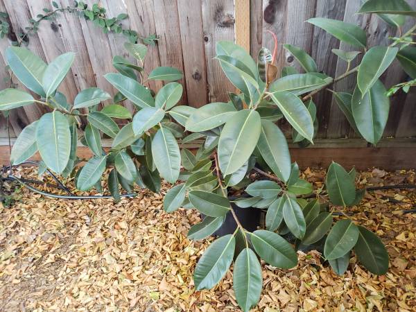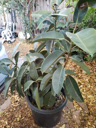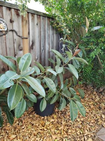 Huge Rubber Plants ( Ficus Elastica) in a 20 gallon pot. Planted with Fox farms soil. Acclimated to outdoors in mostly shade area. Both are about 4 feet tall. One is 4 foot wide. Other is taller and about 3 foot wide. Would be a good space filler on a porch or entry way.