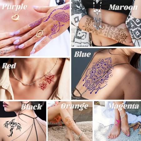 217 PCS Temporary Tattoo Stencil Kit with 12 Tattoo Cones in 9 Colors,12 Sheet Designed Tattoos Pattern Templates for Kids Adults, Body Art DIY Skin Painting Gifts Set for Party Festival