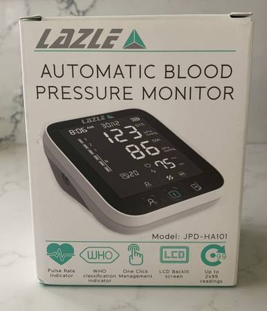 LAZLE Automatic Blood Pressure Monitor, Model# JPD-HA101. Bought new and it's in almost new condition. In original package. Everything from the original package is there including the manual.