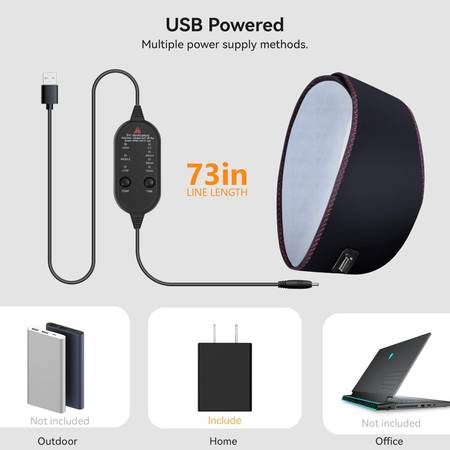 USB Powered: Our heated face warp comes with a USB cord and adapter, and can be plugged into the outlet, PC USB port, or battery(not included). The Heating Pad can be used in the office, at home, as well as while traveling. Anywhere you are, it can relieve