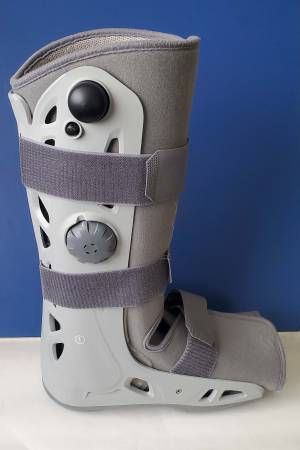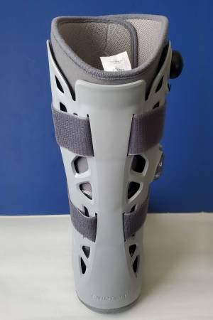Standard large walker boot to stabilize and limit leg, ankle, and foot movement after an injury or surgery manufactured by Aircast.