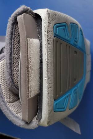 The shell is semi-rigid and there are different areas that can be tightened or loosened for comfort while providing stability. The padded rubber sole feels like walking on an extra wide tennis shoe and it definitely helps to prevent slipping.