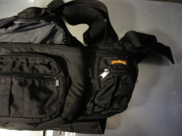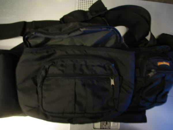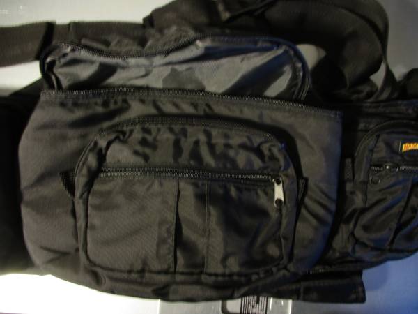 It has 3 compartments to store things, the larger center pouch is 9”x 3”x 4” to fit a lot of items.