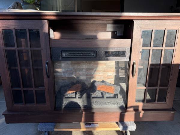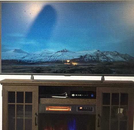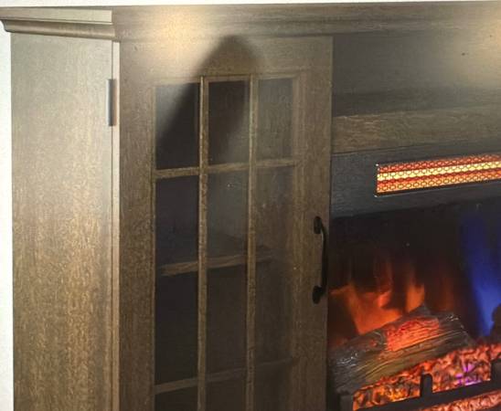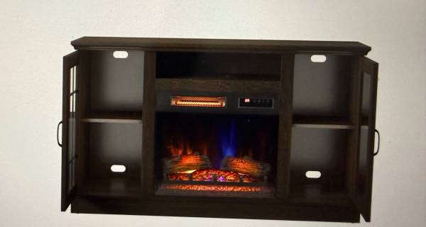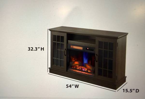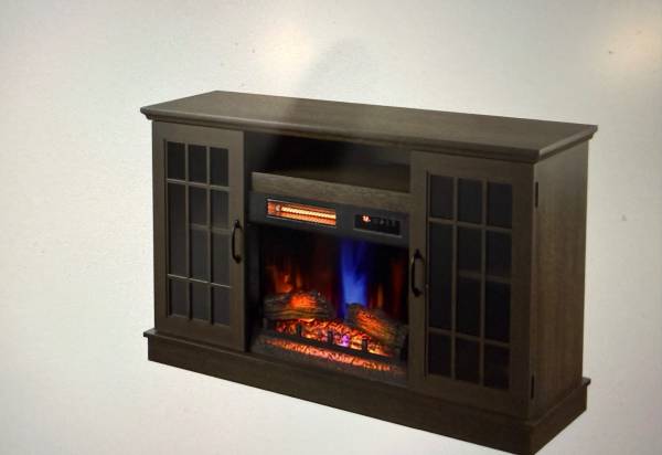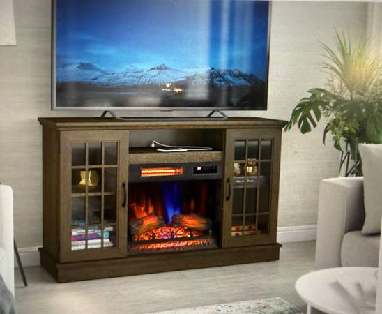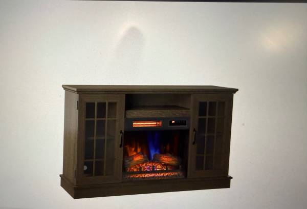 Allen + Roth 54-in W Stanton birch TV Stand with Infrared quartz Flat wall Electric Fireplace with Remote Control Included