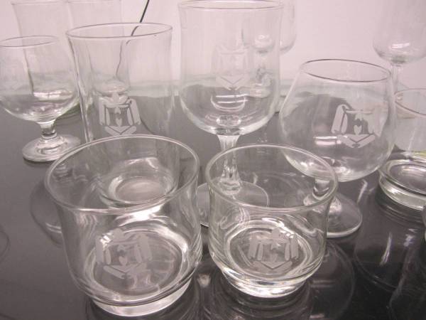 Nice sets of very high quality CRYSTAL glasses, nicely etched with monogram (see pics) in excellent, like-new shape.