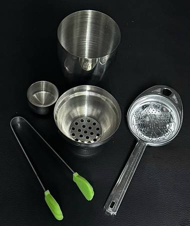 Brand new ✨ only $5 Bartender Stainless Steel Drink Mixology Kit - Shaker to Mix Drinks with Cap, built-in Strainer - Glass Top Strainer for Lime/Lemon/etc - Ice Cube Gripper/Tongs
