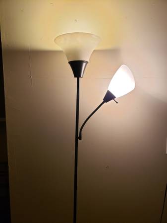 The floor lamp with adjustable reading light works great, comes with LED bulbs. I have two, $10 each, $15 for both. If interested, please text or call me at .