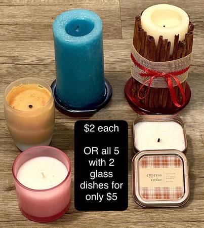 - 1 Tall White Candle, Wood Twigs, Ribbon + Glass Plate