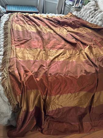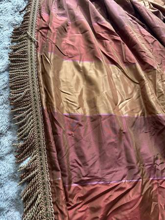 1. Olive with Gold drapes - by Restoration Hardware $50 for all 3 panels 50.5W x 84L. 100% Silk outer and cotton inside. dry clean only