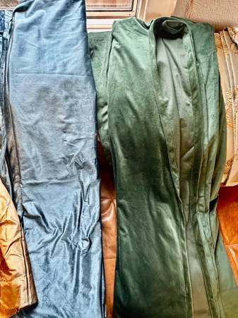 Curtains for sale. Have multiple colors blue, green and olive with gold. Prices are for 2 panels and I have multiple quantities. Please inquire for your selection. I will update as anything is sold. $40 is for some sets and other sets have different prices.