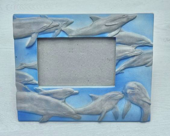 New condition ✨ only $3 Dolphin Picture Frame Stone/Ceramic Holds 4x6 Photo Felt Backing with Stand and Wall Hook