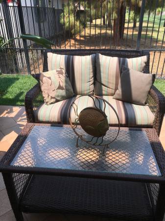 This is free standing piece of ceramic and metal art. It has been stored in my garage and is new, never been displayed. It is an elegant yet whimsical decorative piece for either indoors or outdoors. It stands 15" tall and 14" wide. It is truly unique.