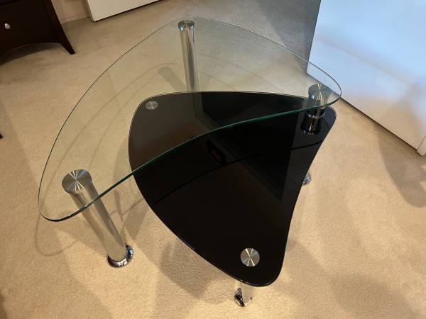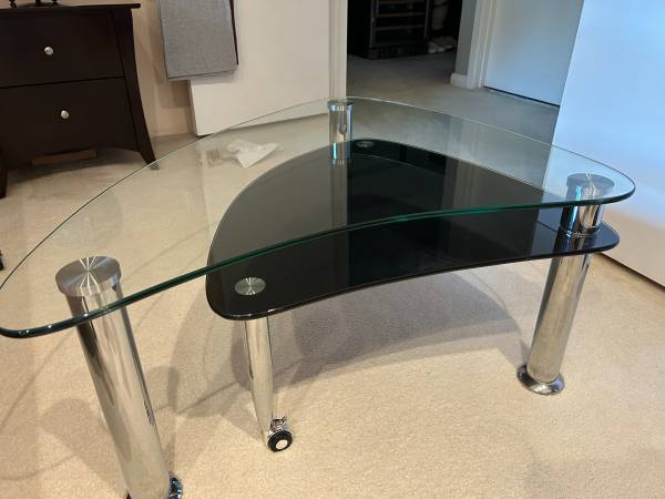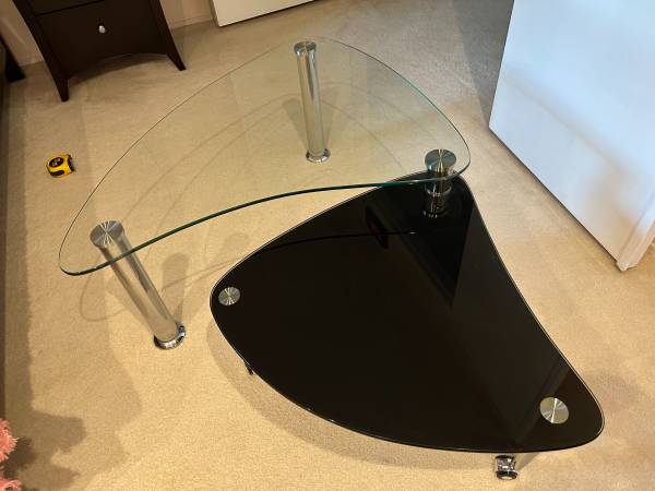 Scandinavian Design Black and Clear Glass Motion Coffee Table Dimetions: Min: 30"x36" Max: 50"x36" Height: 17"