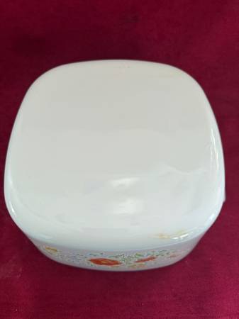 The Vintage Corning Ware Wildflower 3 Liter Casserole Dish a charming square-shaped casserole made of durable Corningware. Featuring a white floral design, this 3 liter/quart dish is perfect for baking and serving meals. With a glossy surface coating, this original vintage piece from the 1970s is a stylish addition to any kitchen. Made in the United States, this casserole is a nostalgic collector's item with a capacity of 3 Liters, making it both decorative and practical for your cooking needs.
