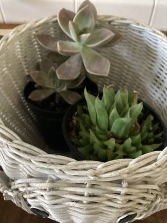I am selling this vintage white wicker, rattan elephant planter with succulents. Can pick up at Starbucks South San Jose zip code 95136. 605 W. Capital Expressway. It comes with the planter as well as the succulents.