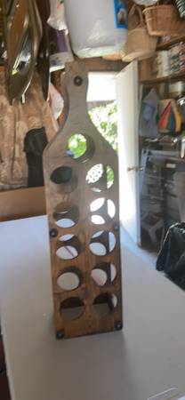 large modernist wine bottle rack / mid century wood wine holder / 1960s bar ware kitchen wine storage 36” h 9.5 w. 8 d reasonable offers considered Cash and carry. No codes