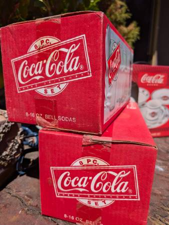 I have 3 vintage coke products. I don't believe any of the boxes have ever been opened. One owner up until now. I have 2 boxes of the bell glasses; each box has 8 cups as pictured. $35 cash each box.