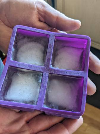 Works great, large solid cubes with their stamp on it. Looks great in a glass, the perfect size for whiskey. $25 cash silicone four cube 4 tray drink drinks party alcohol bar barware freeze freezer...