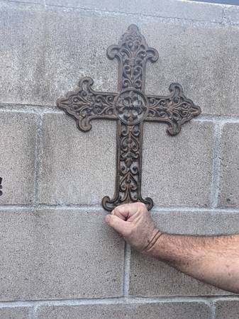 metal religious wall hang church Christ Christmas decor decoration catholic garden decor yard pot flower decoration art artist shrine vnt p0tskl1.2 vintage celtic knot medieval renaissance gothic period antique style heavy scroll floral home house gardening flowers studio dorm ornate icon