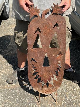 METAL vintage PUNKIN yard art solid sheet iron, heavy, solid, 1 of a k - $125 (sunnyvale)