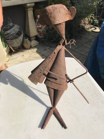 artist hand made old vnt iron rusty midcentury statue stand standing art wire cape sword spain spanish decor decoration bull fight bullfight bullfighter el matador sword