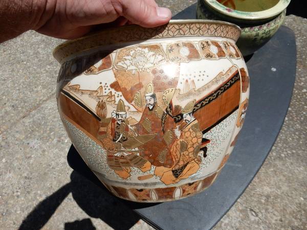 asian china japan flora fish water bowl jardiniere pot koi plant planter p0gkk1.2 porcelain pottery large vintage vnt birds hand art paint painted artist decor office Vintage Chinese Famille Rose Jardiniere Porcelain Fish Bowl Planter pet china chinese kio