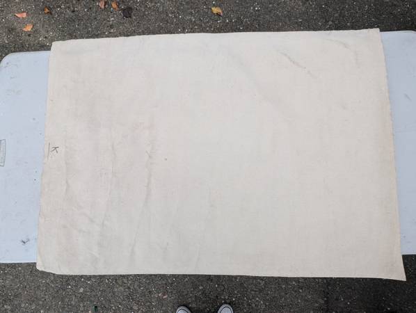 I have owned this piece for maybe 20 years now, was purchased at an estate sale, , I have always liked its subject matter...but I dont know anything about its history. It is hand painted on canvas, can be rolled up for shipping. Paint is fine...will not flake. I wanted to frame it, but never got around to it...time for the next appreciative owner. about 37 " x 26"