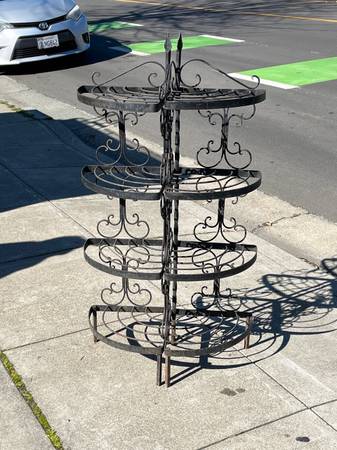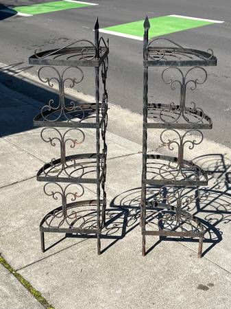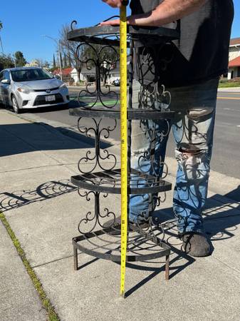 vnt old antique rusty metal floor deck yard indoor outdoor stands tier 4 black shelf shelving corner standing pot pots plant plants decor rustic tiers garden gardening p0gkk1.2 yard art artist craft mid century midcentury pot pab skillet griswold wagner