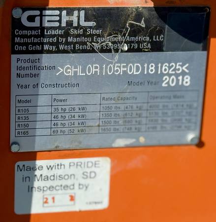 This is my 2018 Gehl R105 Skid Steer. It runs exactly as it should and has recently been serviced. Make sure to check out all 15 pictures.