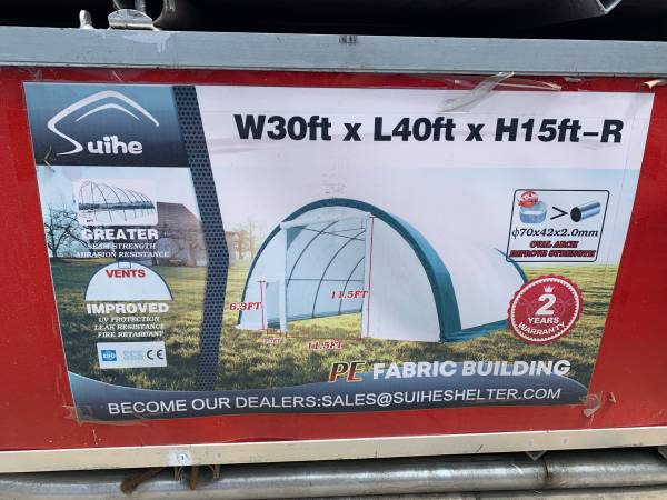 These are a great storage solution for a plethora of applications. You can anchor them straight into the ground or use them on a concrete slab or asphalt or base rock or whatever you got going on. All these kits come with ground stakes, footplates, ratchet straps, and everything else you need to assemble them. 100% waterproof, fire retardant, UV inhibitor canvas and a galvanized steel frame. Constructed of rip-stop fabric that has excellent resistance to wind, cuts and mold. I have had people from all walks of life put these together. The smallest 20x30x12 kit can be put up in less than day and the biggest 40x80x20 kits can go together in two or three days with the right equipment (scissor lift / boom lift / scaffolding / forklift. These are the prices on the shelter kits. You would be hard pressed to find better prices per square foot anywhere. These are the total prices. All said and done.