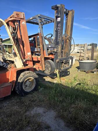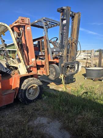 Nissan 8000lb capacity pneumatic tire forklift, triple Stage Mast, runs good, tires in great shape, automatic transmission...The last 3 photos it is carrying a 5k Toyota that weighs 9300 lbs, cheap...